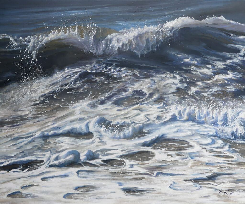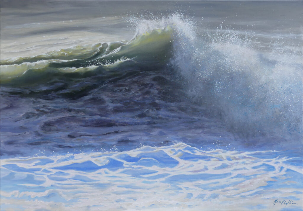 Elle se consacre parallèlement à une œuvre abstraite, mais dans son atelier installé de Cany-Barville en bordure de Durdent, en Normandie près de la côte d’Albâtre, berceau de l’impressionnisme, Mary se rend régulièrement pour chercher l’inspiration à Veulettes sur Mer, aux Petites Dalles et aux Grandes Dalles. Ces lieux magiques l’hypnotisent, elle y passe des heures à observer le mouvement des vagues. Mais elle retourne aussi régulièrement en Baie de Somme chercher l’inspiration avec Arnaud Delattre, guide Nature qui l’accompagne dans la recherche de ses sujets.